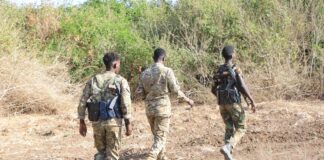 Southwest State troops conduct a planned operation in Gaalooga, on the...