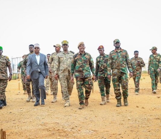 Defense Minister, accompanied by the Army Chief, inspect army positions in Baidoa.