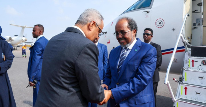The Somali President, Mr. Hassan Sheikh Mohamud, travelled to Djibouti on an official working visit on Wednesday, where he is scheduled to meet with his Djiboutian counterpart, Mr. Ismail Omar Guelleh. According to Somali government officials, the high-level meeting between the two leaders will focus on strengthening bilateral ties between Djibouti and Somalia, specifically in the areas of security, economic cooperation, and political coordination. It is expected that the two leaders will discuss the current situation in the Horn of Africa and the escalating conflict in the Middle East. This is the first foreign visit for the Somali President since he officially signed the newly revised constitution, which was approved by the bicameral Somali Federal Parliament. Djibouti is a close ally to Somalia in the region and plays a significant role in ongoing efforts to strengthen security and combat Al-Shabab. Djibouti has strongly condemned Israel’s recognition of the Republic of Somaliland, stating its support for the unity and territorial sovereignty of Somalia.
